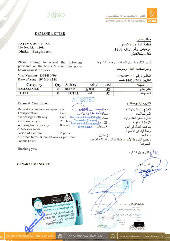 Fatema Overseas, established in 2013 and licensed by the Government of Bangladesh (RL No.1205), is one of the leading manpower exporters. With global branches, we provide skilled and unskilled workers to countries like Saudi Arabia, UAE, Qatar, Malaysia, and more.