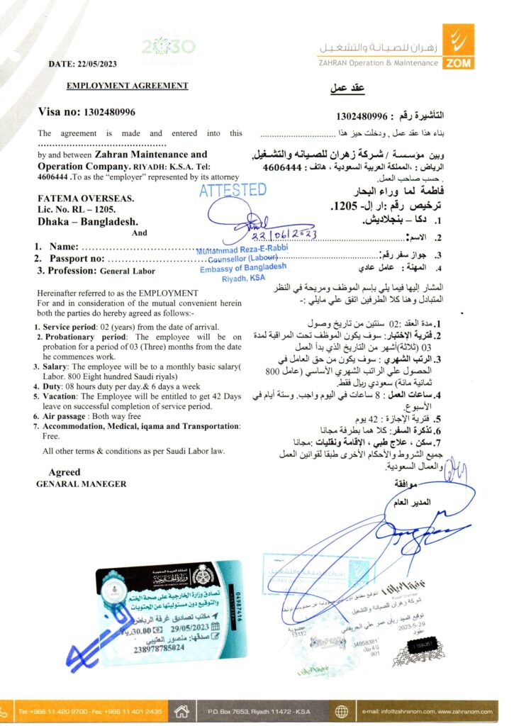 “Fatema Overseas made my overseas employment smooth and hassle-free. From visa processing to orientation, everything was handled professionally. Highly recommended for anyone seeking reliable overseas jobs.”